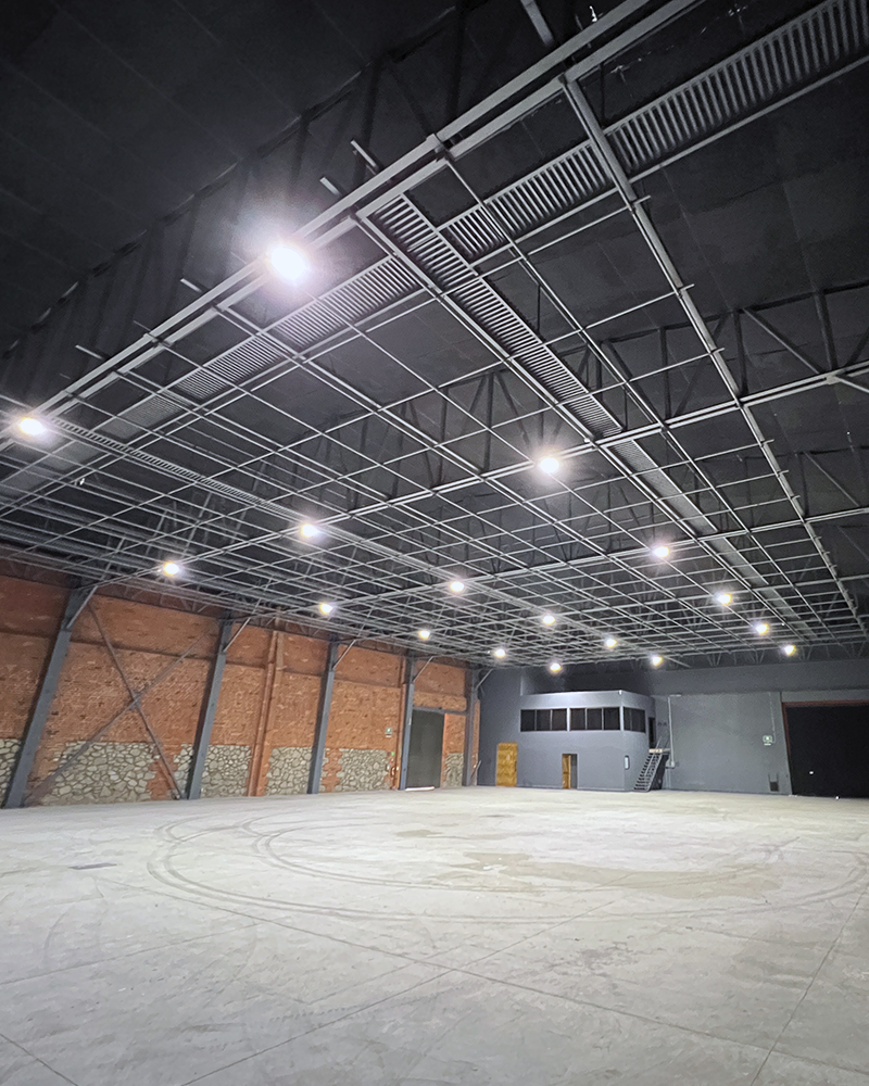 - Ciclorama blanco en L de 11 x 11 x 6 m